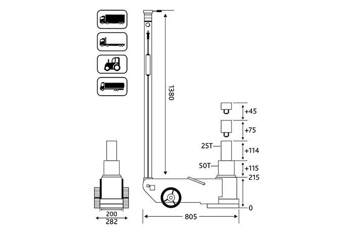 • Система быстрого подъема позволяет быстрее подвести шток к грузу.