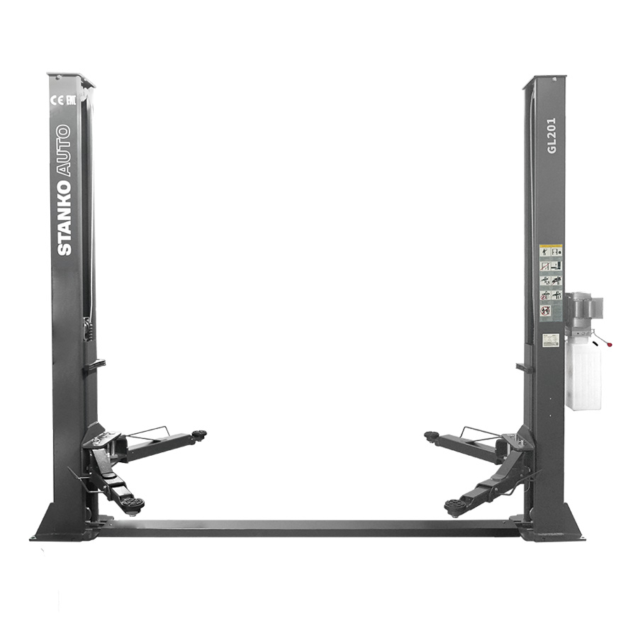 Электрогидравлический подъемник «STANKOAUTO» GL201 2‑стоечный с нижней синхронизацией, 220 В предназначен для подъема автомобилей на определенную высоту с целью их ремонта и обслуживания. Используется в автосервисах, автомастерских и гаражах.