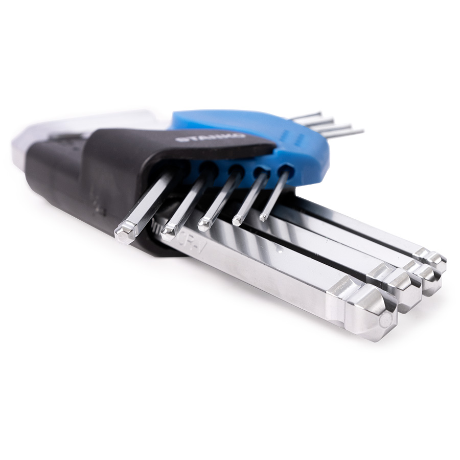 Набор угловых шестигранных ключей, состоит из 9 L-образных ключей, имеющих профиль HEX.