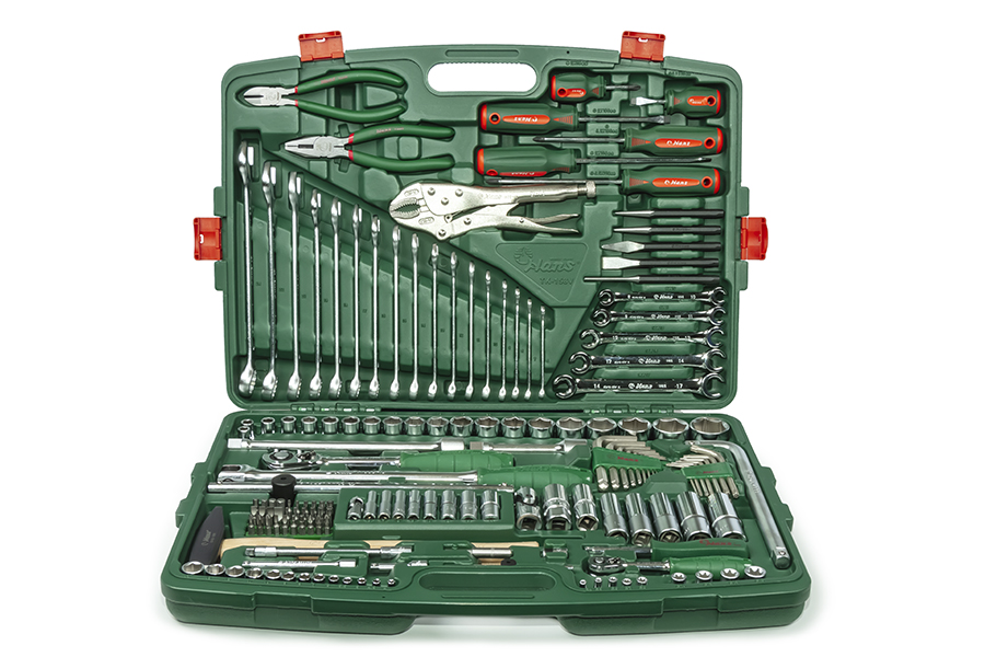 В своё время озадачился выбором набора инструмента для домашней мастерской, чтобы обслуживать собственный автопарк и решать хозяйственные дела в частном доме. Лучшим по наполнению набором оказался Hans TK-158V - на самом деле ни одной ненужной детали, только для того, чтобы большую цифру количества инструментов написать на коробке - набор имеет оптимальный состав. За более чем 4 года достаточно серьёзной эксплуатации к качеству инструмента никаких претензий не возникло - отвёртки не слизались, ключи целые, ничего не потеряло первоначальных свойств. Сломал угловой вороток - виноват сам - крутил рычагом из двухметровой трубы и усилия явно превышали    запас прочности.