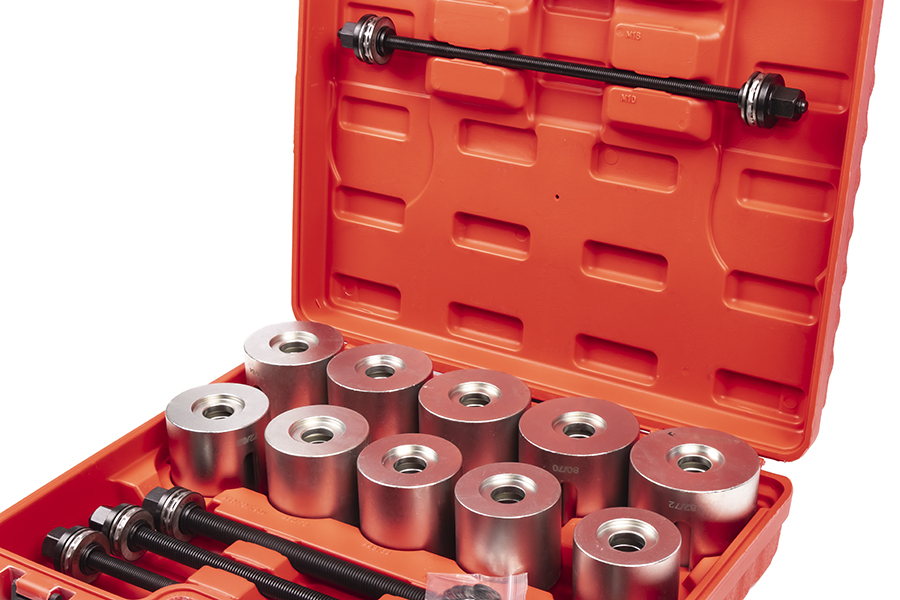 Применяется для снятия и установки подшипников, сайлентблоков и других деталей, имеющих посадку в натяг. Данный набор является полностью универсальным и может применяться как при ремонте легкового, так и грузового транспорта.